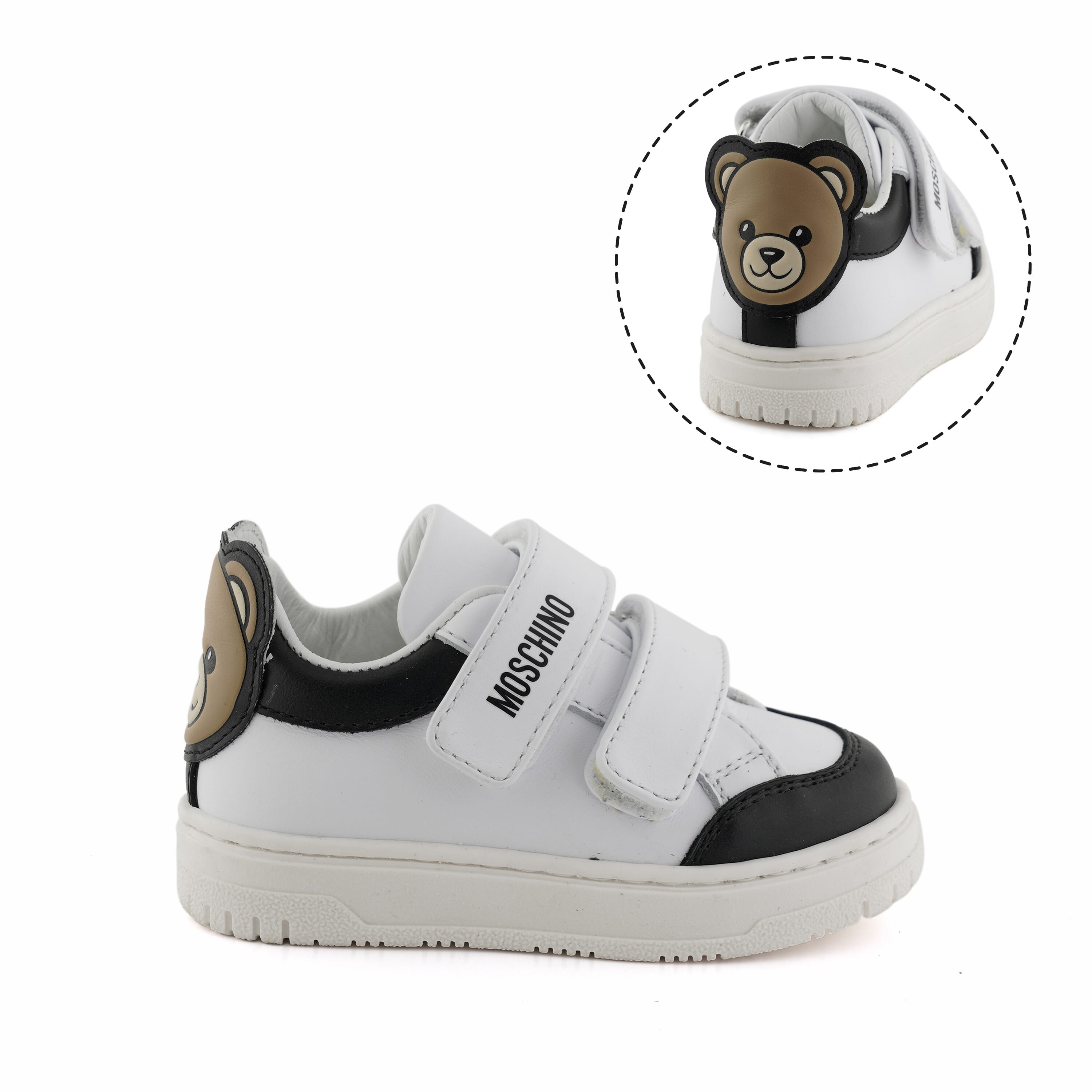 MOSCHINO SNEAKERS LOW WITH TEDDY BEAR PATCH ON HEEL LOGO ON VELCRO-STRAP CLOSURE