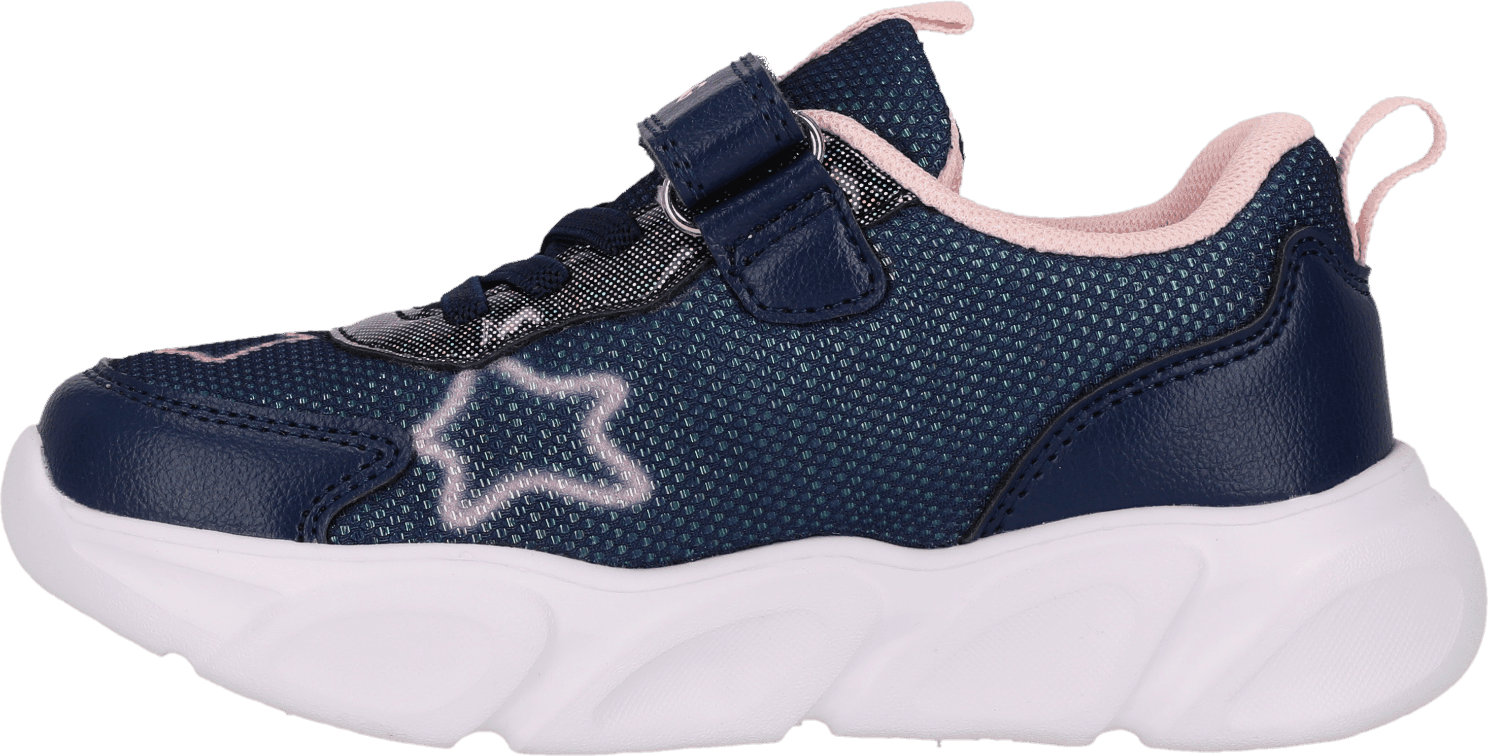 Exterior: synthetic and textile Interior: textile Outsole: rubber Elastic lacing Velcro fastener Flashing soles Patterned